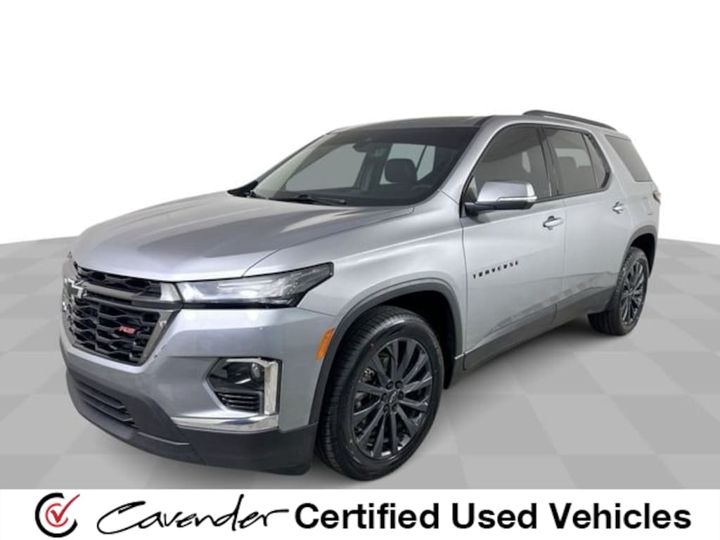 Cavender Certified Pre-Owned Program Built-in Benefits: Limited Powertrain Warranty for your peace of mind. Coverage includes components for engine, transmission and axles (for specific component coverage, please speak with a dealer representative). 24/7 Roadside Assistance â" No out-of-pocket costs for customers towed to our dealership (if located within 30 miles), lockout assistance, jump start, fuel and fluid delivery, flat tire changes, available 365 days/year, up to $100 maximum coverage per roadside incident. A Vehicle History Report is included with every Cavender Certified Pre-Owned vehicle to offer you Confidence knowing that the vehicle you are purchasing is right for you and the road ahead. (Limitation and exclusions apply. Please refer to your Limited Warranty Registration for full coverage information.) The Cavender Auto Family, proudly serving our communities since 1939, and we look forward to serving you! - Equipment: Preferred Equipment Group 2LT (Heated Driver & Front Passenger Seats), Trailering Equipment (Heavy-Duty Cooling System, Hitch Guidance w/Hitch View, and Trailering Assist Guidelines), Traverse RS, 4D Sport Utility, 3.6L V6 SIDI VVT, Sterling Gray Metallic, Jet Black/Spice Red w/Perforated Leather-Appointed Seat Trim, 10 Speakers, 3.49 Axle Ratio, 3rd row seats: split-bench, 4-Wheel Disc Brakes, 6-Way Power Front Passenger Seat, 8-Way Power Driver Seat Adjuster, ABS brakes, Air Conditioning, Alloy wheels, AM/FM radio: SiriusXM with 360L, Apple CarPlay/Android Auto, Auto High-beam Headlights, Auto-dimming Rear-View mirror, Automatic temperature control, Bose Premium 10-Speaker Audio System Feature, Brake assist, Bumpers: body-color, Compass, Delay-off headlights, Driver door bin, Driver vanity mirror, Dual front impact airbags, Dual front side impact airbags, Electronic Stability Control, Emergency communication system, Exterior Parking Camera Rear, Four wheel independent suspension, Front anti-roll bar, Front Bucket Seats, Front Center Armrest, Front dual zone A/C, Front Passenger 2-Way Power Lumbar, Front reading lights, Fully automatic headlights, Garage door transmitter, Heated door mirrors, Heated front seats, Heated steering wheel, Illuminated entry, Leather steering wheel, Low tire pressure warning, Navigation System, Not Equipped w/Rear Park Assist (060), Occupant sensing airbag, Outside temperature display, Overhead airbag, Overhead console, Panic alarm, Passenger door bin, Passenger vanity mirror, Perforated Leather-Appointed Seat Trim, Power door mirrors, Power Driver Lumbar Control, Power driver seat, Power Liftgate, Power passenger seat, Power steering, Power windows, Premium audio system: Chevrolet Infotainment 3 Plus, Radio data system, Radio: Chevrolet Infotainment 3 Plus System w/Navi, Rear air conditioning, Rear anti-roll bar, Rear reading lights, Rear window defroster, Rear window wiper, Remote keyless entry, Security system, SiriusXM w/360L, Speed control, Speed-sensing steering, Spoiler, Steering wheel mounted audio controls, Tachometer, Telescoping steering wheel, Thatcham Black Lug Nut & Wheel Lock Kit (LPO), Tilt steering wheel, Traction control, Trip computer, Turn signal indicator mirrors, Variably intermittent wipers, Voltmeter, and Wheels: 20" Dark Aluminum.