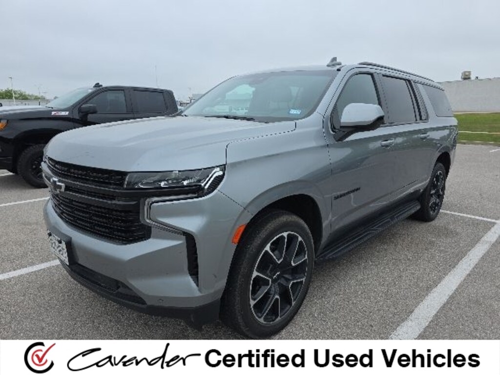 Cavender Certified Pre-Owned Program Built-in Benefits: Limited Powertrain Warranty for your peace of mind. Coverage includes components for engine, transmission and axles (for specific component coverage, please speak with a dealer representative). 24/7 Roadside Assistance â" No out-of-pocket costs for customers towed to our dealership (if located within 30 miles), lockout assistance, jump start, fuel and fluid delivery, flat tire changes, available 365 days/year, up to $100 maximum coverage per roadside incident. A Vehicle History Report is included with every Cavender Certified Pre-Owned vehicle to offer you Confidence knowing that the vehicle you are purchasing is right for you and the road ahead. (Limitation and exclusions apply. Please refer to your Limited Warranty Registration for full coverage information.) The Cavender Auto Family, proudly serving our communities since 1939, and we look forward to serving you! - Equipment: License Plate Front Mounting Package, Preferred Equipment Group 1SP (10-Way Power Driver & Passenger Seat Adjusters, 1st & 2nd Row Color-Keyed Carpeted Floor Mats, Auto-Dimming Inside Rear-View Mirror, Bose 9-Speaker Stereo Audio System Feature, Bright Front & Rear Door Sill Plates, Color-Keyed Carpeting Floor Covering, Driver & Front Outboard Passenger Airbags, Enhanced Driver Information Center, Floor Console w/Storage Area, Hands-Free Rear Power Programmable Liftgate, Heated Driver & Front Passenger Seats, Infotainment Display, LED Daytime Running Lamps, Memory Settings For Driver, Remote Start, SiriusXM w/360L, Universal Home Remote, Wireless Charging, and Wrapped Steering Wheel), Suburban RST, 4D Sport Utility, EcoTec3 5.3L V8, Sterling Gray Metallic, Red Leather, 3.23 Rear Axle Ratio, 3rd row seats: split-bench, 4-Wheel Disc Brakes, 9 Speakers, ABS brakes, Air Conditioning, Alloy wheels, AM/FM radio: SiriusXM with 360L, Apple CarPlay/Android Auto, Auto High-beam Headlights, Auto-dimming Rear-View mirror, Automatic temperature control, Brake assist, Bumpers: body-color, Compass, Delay-off headlights, Deleted 3 Years of Remote Access, Driver door bin, Driver vanity mirror, Dual front impact airbags, Dual front side impact airbags, Electronic Stability Control, Emergency communication system: OnStar and Chevrolet connected services capable, Four wheel independent suspension, Front anti-roll bar, Front Bucket Seats, Front Center Armrest, Front dual zone A/C, Front reading lights, Fully automatic headlights, Garage door transmitter, Heated door mirrors, Heated front seats, Illuminated entry, Low tire pressure warning, Memory seat, Navigation System, Occupant sensing airbag, Outside temperature display, Overhead airbag, Overhead console, Panic alarm, Passenger door bin, Passenger vanity mirror, Perforated Leather Seating Surfaces, Power door mirrors, Power driver seat, Power Liftgate, Power passenger seat, Power steering, Power windows, Premium audio system: Chevrolet Infotainment 3 Premium, Premium Smooth Ride Suspension, Radio: Chevrolet Infotainment 3 Premium System, Rain sensing wipers, Rear air conditioning, Rear anti-roll bar, Rear reading lights, Rear seat center armrest, Rear window defroster, Rear window wiper, Remote keyless entry, Roof rack: xxxxxx, Security system, Speed control, Speed-sensing steering, Split folding rear seat, Spoiler, Steering wheel mounted audio controls, Tachometer, Telescoping steering wheel, Tilt steering wheel, Traction control, Trip comput