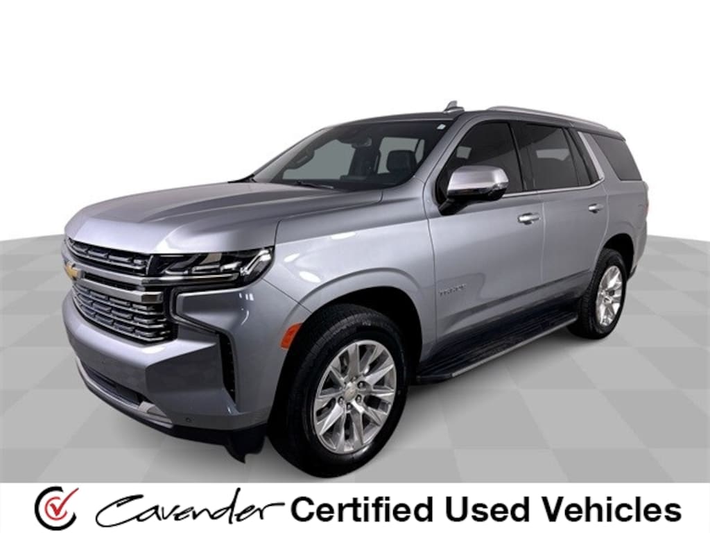Cavender Certified Pre-Owned Program Built-in Benefits: Limited Powertrain Warranty for your peace of mind. Coverage includes components for engine, transmission and axles (for specific component coverage, please speak with a dealer representative). 24/7 Roadside Assistance â" No out-of-pocket costs for customers towed to our dealership (if located within 30 miles), lockout assistance, jump start, fuel and fluid delivery, flat tire changes, available 365 days/year, up to $100 maximum coverage per roadside incident. A Vehicle History Report is included with every Cavender Certified Pre-Owned vehicle to offer you Confidence knowing that the vehicle you are purchasing is right for you and the road ahead. (Limitation and exclusions apply. Please refer to your Limited Warranty Registration for full coverage information.) The Cavender Auto Family, proudly serving our communities since 1939, and we look forward to serving you! - Equipment: Preferred Equipment Group 1LZ (1st & 2nd Row Color-Keyed Carpeted Floor Mats, 2-Speed Active Electronic AutoTrac Transfer Case, 3rd Row 60/40 Power-Folding Split-Bench Seat, Auto-Dimming Inside Rear-View Mirror, Bose 10-Speaker Centerpoint Surround Audio Sys Ft, Bright Front & Rear Door Sill Plates, Chrome Door Handles w/Body-Color Strip, Chrome Mirror Caps, Color-Keyed Carpeting Floor Covering, Driver & Front Outboard Passenger Airbags, Dual Exhaust System, Enhanced Driver Information Center, Floor Console, Hands-Free Rear Power Programmable Liftgate, Heated 2nd Row Outboard Seats, Heated Steering Wheel, Hill Descent Control, Lane Change Alert w/Side Blind Zone Alert, LED Daytime Running Lamps, Memory Settings, Outside Heated Power-Adjustable Mirrors, Power Release 2nd Row Bucket Seats, Power Tilt & Telescopic Steering Column, Rear Cross Traffic Alert, Remote Start, Safety Alert Seat, SiriusXM w/360L, Universal Home Remote, Wireless Charging, and Wrapped Steering Wheel), Tahoe Premier, 4D Sport Utility, 4WD, Sterling Gray Metallic, Jet Black w/Perforated Leather Seat Trim, 10 Speakers, 12-Way Power Driver & Passenger Seat Adjusters, 20" x 9" Polished Aluminum Wheels, 3.23 Rear Axle Ratio, 3rd row seats: split-bench, 4-Wheel Disc Brakes, ABS brakes, Adaptive suspension, Air Conditioning, Alloy wheels, AM/FM radio: SiriusXM with 360L, Apple CarPlay/Android Auto, Auto High-beam Headlights, Auto-dimming door mirrors, Auto-dimming Rear-View mirror, Auto-leveling suspension, Automatic temperature control, Brake assist, Bumpers: body-color, Compass, Delay-off headlights, Deleted 3 Years of OnStar Remote Access, Driver & Front Passenger Heated & Ventilated Seats, Driver door bin, Driver vanity mirror, Dual front impact airbags, Dual front side impact airbags, Electronic Stability Control, Emergency communication system: OnStar and Chevrolet connected services capable, Four wheel independent suspension, Front anti-roll bar, Front Bucket Seats, Front Center Armrest, Front dual zone A/C, Front High-Back Reclining Bucket Seats, Front reading lights, Fully automatic headlights, Garage door transmitter, Heated door mirrors, Heated Driver & Front Passenger Seats, Heated front seats, Heated rear seats, Heated steering wheel, Illuminated entry, Infotainment Display, Low tire pressure warning, Magnetic Ride Control Suspension, Memory seat, Navigation System, Occupant sensing airbag, Outside temperature display, Overhead airbag, Overhead console, Panic alarm, Passenger door bin, Passenger van