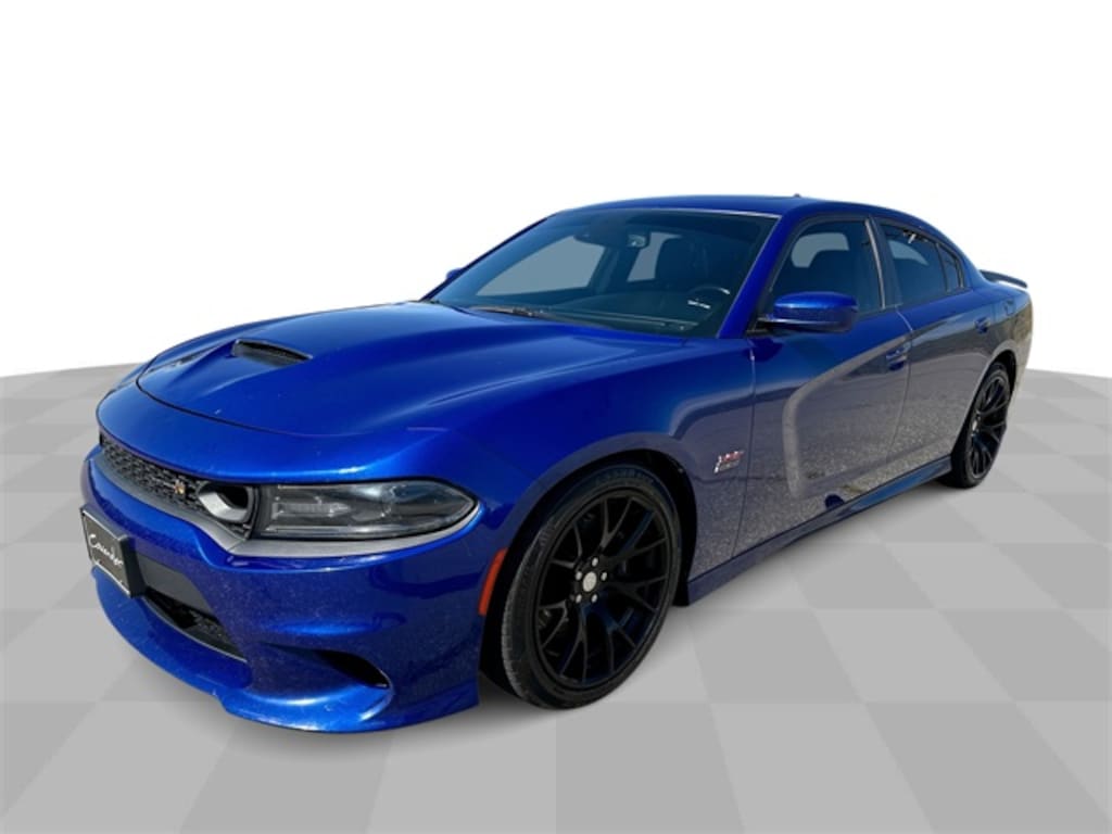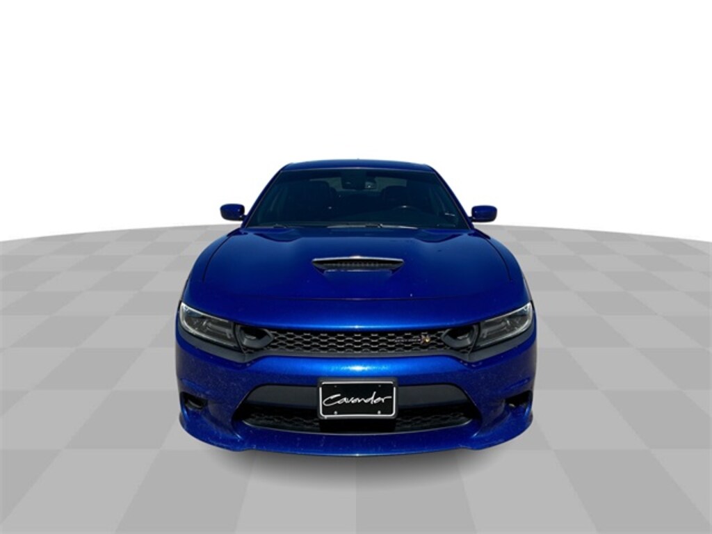 Features: , Driver Convenience Group (Auto-Dimming Exterior Driver Mirror, Bi-Function HID Projector Head Lamps, Blind Spot & Cross Path Detection, Blind Spot Power Heated Mirror, and Exterior Mirrors Courtesy Lamps), Plus Group (Auto Adjust In Reverse Exterior Mirrors, Black-Edged Premium Floormats, Blind Spot Memory/Power/Heat Mirror, Driver & Passenger Lower LED Lamps, Front Overhead LED Lighting, Heated 2nd Row Seats, Illuminated Rear Cupholders, Power Front Driver/Passenger Seats, Power Tilt/Telescope Steering Column, Premium-Stitched Dash Panel, Radio/Driver Seat/Mirrors Memory, Scat Pack Logo Nappa/Alcantara Seat, Power Driver/Passenger 4-Way Lumbar Adjust, Rear Seat Armrest w/Storage Cupholder, and Ventilated Front Seats), Quick Order Package 21W, Technology Group (Adaptive Cruise Control w/Stop, Advanced Brake Assist, Auto High Beam Headlamp Control, Full Speed FWD Collision Warn Plus, Lane Departure Warning Plus, and Rain Sensitive Windshield Wipers), Charger R/T Scat Pack Technology, 4D Sedan, SRT HEMI 6.4L V8 MDS, Indigo Blue, Black w/Cloth Performance Seats w/Bee Logo or Daytona Logo Nappa/Alcantara Seat or Scat Pack Logo Nappa/Alcantara Seat, Power Sunroof, 4-Wheel Disc Brakes, 6 Speakers, ABS brakes, Air Conditioning, Alloy wheels, AM/FM radio: SiriusXM, Anti-whiplash front head restraints, Apple CarPlay/Android Auto, Auto-dimming Rear-View mirror, Automatic temperature control, Brake assist, Bumpers: body-color, Cloth Performance Seats w/Bee Logo, Compass, Delay-off headlights, Driver door bin, Driver vanity mirror, Dual front impact airbags, Dual front side impact airbags, Electronic Stability Control, Emergency communication system: SiriusXM Guardian, Four wheel independent suspension, Front anti-roll bar, Front Bucket Seats, Front Center Armrest, Front dual zone A/C, Front fog lights, Front License Plate Bracket, Front reading lights, Fully automatic headlights, Garage door transmitter: HomeLink, Heated front seats, Illuminated entry, Knee airbag, Leather Shift Knob, Low tire pressure warning, Manufacturer's Statement of Origin, Occupant sensing airbag, Outside temperature display, Overhead airbag, Overhead console, Panic alarm, ParkView Rear Back-Up Camera, Passenger door bin, Passenger vanity mirror, Power door mirrors, Power driver seat, Power passenger seat, Power steering, Power windows, Radio data system, Radio: Uconnect 4C w/8.4" Display, Rear anti-roll bar, Rear reading lights, Rear seat center armrest, Rear window defroster, Remote keyless entry, Security system, Speed control, Speed-Sensitive Wipers, Split folding rear seat, Spoiler, Sport steering wheel, Steering wheel mounted audio controls, Tachometer, Telescoping steering wheel, Tilt steering wheel, Traction control, Trip computer, Variably intermittent wipers, and Wheels: 20" x 9" Lo Gloss Granite Crystal.