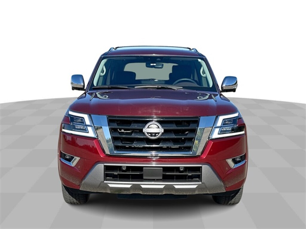 Features: Captain's Chairs Package (2nd Row Captain's Chairs and 2nd Row Center Console w/Padded Armrest), Cargo Package, 4WD, 13 Speakers, 2.94 Axle Ratio, 3rd Row Carpeted Floor Mats - Captain Seat, 3rd row seats: split-bench, 4-Wheel Disc Brakes, A/V remote, ABS brakes, Air Conditioning, Alloy wheels, AM/FM radio: SiriusXM, Anti-whiplash front head restraints, Auto High-beam Headlights, Auto tilt-away steering wheel, Auto-dimming door mirrors, Auto-dimming Rear-View mirror, Auto-leveling suspension, Automatic temperature control, Brake assist, Bumpers: body-color, Climate-Controlled Front Bucket Seats, Delay-off headlights, Driver door bin, Driver vanity mirror, Dual front impact airbags, Dual front side impact airbags, Electronic Stability Control, Emergency communication system: NissanConnect Services, Exterior Parking Camera Rear, Four wheel independent suspension, Front anti-roll bar, Front Bucket Seats, Front Center Armrest, Front dual zone A/C, Front fog lights, Front reading lights, Fully automatic headlights, Garage door transmitter: HomeLink, Headphones, Heated door mirrors, Heated front seats, Heated rear seats, Heated steering wheel, Illuminated entry, Illuminated Kick Plates, Illuminated Scuff Plate, Knee airbag, Leather Shift Knob, Low tire pressure warning, Memory seat, Navigation System, NissanConnect featuring Apple CarPlay and Android Auto, Occupant sensing airbag, Outside temperature display, Overhead airbag, Overhead console, Panic alarm, Passenger door bin, Passenger vanity mirror, Power door mirrors, Power driver seat, Power Liftgate, Power moonroof, Power passenger seat, Power steering, Power windows, Quilted Leather Seat Trim, Radio: NissanConnect w/SiriusXM, Rain sensing wipers, Rear air conditioning, Rear anti-roll bar, Rear reading lights, Rear seat center armrest, Rear window defroster, Rear window wiper, Reclining 3rd row seat, Remote keyless entry, Roof Rail Cross Bars, Security system, Speed control, Speed-sensing steering, Speed-Sensitive Wipers, Split folding rear seat, Spoiler, Steering wheel memory, Steering wheel mounted audio controls, Tachometer, Telescoping steering wheel, Tilt steering wheel, Traction control, Trip computer, Turn signal indicator mirrors, Variably intermittent wipers, Ventilated front seats, Voltmeter, and Wheels: 22" x 8J Machine-Faced w/Tinted Clear Coat.