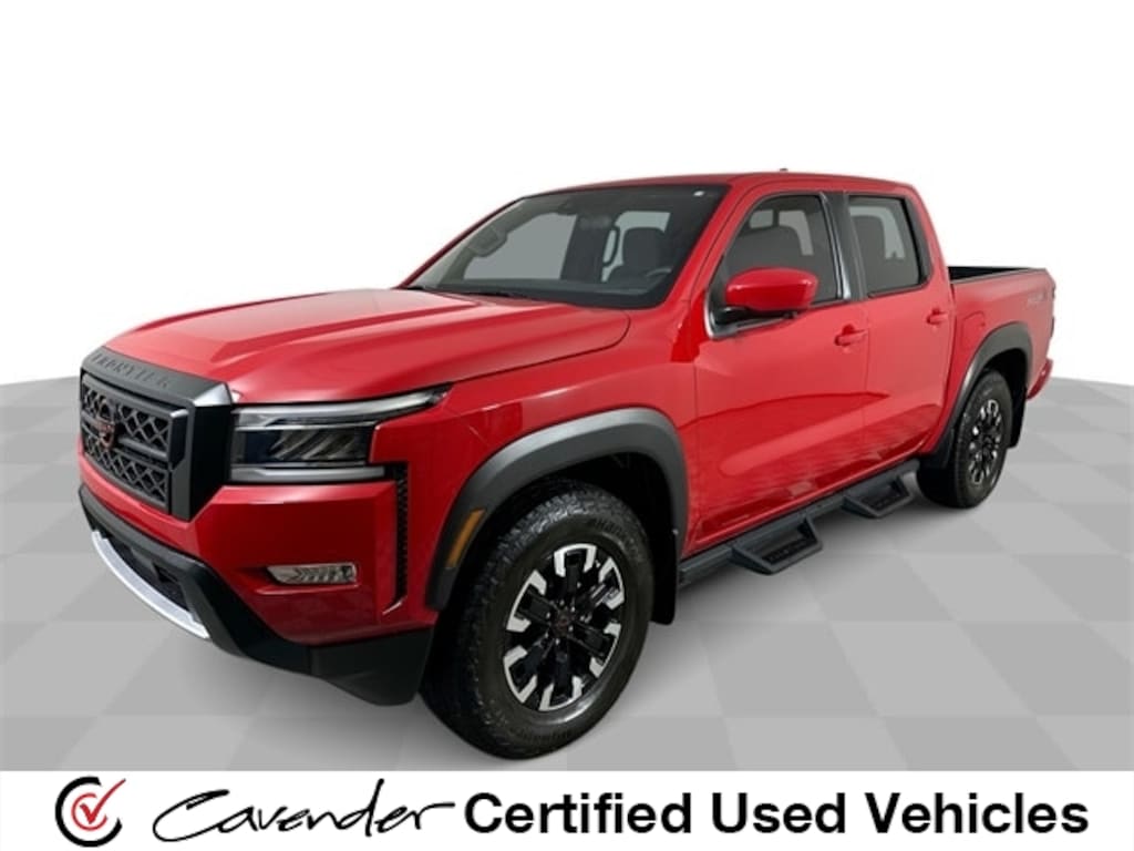 Cavender Certified Pre-Owned Program Built-in Benefits: Limited Powertrain Warranty for your peace of mind. Coverage includes components for engine, transmission and axles (for specific component coverage, please speak with a dealer representative). 24/7 Roadside Assistance â" No out-of-pocket costs for customers towed to our dealership (if located within 30 miles), lockout assistance, jump start, fuel and fluid delivery, flat tire changes, available 365 days/year, up to $100 maximum coverage per roadside incident. A Vehicle History Report is included with every Cavender Certified Pre-Owned vehicle to offer you Confidence knowing that the vehicle you are purchasing is right for you and the road ahead. (Limitation and exclusions apply. Please refer to your Limited Warranty Registration for full coverage information.) The Cavender Auto Family, proudly serving our communities since 1939, and we look forward to serving you! - Equipment: PRO Convenience Package (Heated Steering Wheel, Intelligent Around View Monitor (I-AVM), and Wireless Charging For Personal Devices), Tow Package: Hitch, Tow Harness, Frontier PRO-X, 4D Crew Cab, 3.8L DI DOHC 24V V6, Red Alert, Charcoal w/Premium Cloth Seat Trim, 17" Alloy Wheels, 3.692 Axle Ratio, 4-Wheel Disc Brakes, 6 Speakers, ABS brakes, Air Conditioning, Alloy wheels, AM/FM radio: SiriusXM, Anti-whiplash front head restraints, Automatic temperature control, Brake assist, Bumpers: body-color, Carpeted Floor Mats, Delay-off headlights, Driver door bin, Driver vanity mirror, Dual front impact airbags, Dual front side impact airbags, Electronic Stability Control, Electronic Tailgate Lock, Emergency communication system: NissanConnect Services, Front anti-roll bar, Front Bucket Seats, Front Center Armrest, Front dual zone A/C, Front fog lights, Front reading lights, Front wheel independent suspension, Fully automatic headlights, Illuminated entry, Knee airbag, Leather Shift Knob, Low tire pressure warning, Navigation system: Nissan Navigation with Voice Recognition, Occupant sensing airbag, Off-Road Style Step Rails, Overhead airbag, Overhead console, Panic alarm, Passenger door bin, Passenger vanity mirror, Power door mirrors, Power driver seat, Power steering, Power windows, PRO Embroidered Premium Cloth Seat Trim, PRO-X Mud Flaps, Radio data system, Radio: SXM/AM/FM/AUX/USB Audio System w/6 Speakers, Rear anti-roll bar, Rear seat center armrest, Rear step bumper, Remote keyless entry, Security system, Speed control, Speed-sensing steering, Split folding rear seat, Steering wheel mounted audio controls, Tachometer, Tilt steering wheel, Traction control, Trip computer, Variably intermittent wipers, and Voltmeter.