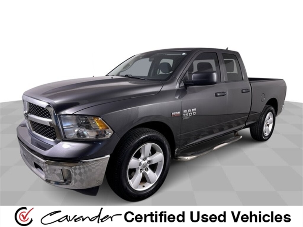 Cavender Certified Pre-Owned Program Built-in Benefits: Limited Powertrain Warranty for your peace of mind. Coverage includes components for engine, transmission and axles (for specific component coverage, please speak with a dealer representative). 24/7 Roadside Assistance â" No out-of-pocket costs for customers towed to our dealership (if located within 30 miles), lockout assistance, jump start, fuel and fluid delivery, flat tire changes, available 365 days/year, up to $100 maximum coverage per roadside incident. A Vehicle History Report is included with every Cavender Certified Pre-Owned vehicle to offer you Confidence knowing that the vehicle you are purchasing is right for you and the road ahead. (Limitation and exclusions apply. Please refer to your Limited Warranty Registration for full coverage information.) The Cavender Auto Family, proudly serving our communities since 1939, and we look forward to serving you! - Equipment: Quick Order Package 26B Tradesman, Tradesman Package, Tradesman SXT Package (20" x 8" Aluminum Wheels, 40/20/40 Split Bench Seat, Body Color Upper Fascia, Bright Front Bumper, Bright Grille, Bright Rear Bumper, Carpet Floor Covering, Center Hub, Cloth 40/20/40 Bench Seat, Dual Rear Exhaust w/Bright Tips, For More Info, Call 800-643-2112, Front Armrest w/3 Cupholders, Front Floor Mats, Front Fog Lamps, Manual Adjust Seats, No Satellite Coverage w/HI/AK/PR/VI/GU, Rear Floor Mats, Rear Folding Seat, Remote Keyless Entry w/All-Secure, SiriusXM Radio Service, and SiriusXM Satellite Radio), 1500 Classic Tradesman, 4D Quad Cab, HEMI 5.7L V8 Multi Displacement VVT, RWD, Granite Crystal Metallic Clearcoat, Black Cloth, 1 Year Trial (Registration Required), 17" x 7" Steel Wheels, 3.21 Rear Axle Ratio, 4-Wheel Disc Brakes, 6 Speakers, ABS brakes, Active Grille Shutters, Air Conditioning, AM/FM radio, Audio Input Jack for Mobile Devices, Black Exterior Mirrors, Brake assist, Charge Only Remote USB Port, Compass, Delay-off headlights, Driver door bin, Dual front impact airbags, Dual front side impact airbags, Electronic Shift, Electronic Stability Control, Exterior Mirrors w/Heating Element, For Details Visit DriveUconnect.com, Front anti-roll bar, Front Center Armrest, Front wheel independent suspension, Fully automatic headlights, Global Telematics Box Module (TBM), GPS Antenna Input, Heated door mirrors, Heavy Duty Vinyl 40/20/40 Split Bench Seat, Integrated Voice Command w/Bluetooth, Low tire pressure warning, Manufacturer's Statement of Origin, Occupant sensing airbag, Outside temperature display, Overhead airbag, Overhead console, ParkView Rear Back-Up Camera, Passenger door bin, Power door mirrors, Power steering, Power windows, Radio data system, Radio: Uconnect 3 w/5" Display, Rear anti-roll bar, Rear step bumper, Remote USB Port, SiriusXM Guardian - Included Trial (B), Speed control, Tachometer, Tilt steering wheel, Tip Start, Traction control, Variably intermittent wipers, and Voltmeter.