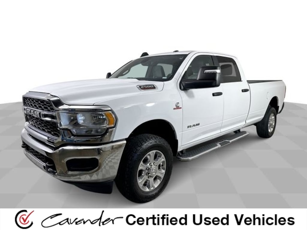 Cavender Certified Pre-Owned Program Built-in Benefits: Limited Powertrain Warranty for your peace of mind. Coverage includes components for engine, transmission and axles (for specific component coverage, please speak with a dealer representative). 24/7 Roadside Assistance â" No out-of-pocket costs for customers towed to our dealership (if located within 30 miles), lockout assistance, jump start, fuel and fluid delivery, flat tire changes, available 365 days/year, up to $100 maximum coverage per roadside incident. A Vehicle History Report is included with every Cavender Certified Pre-Owned vehicle to offer you Confidence knowing that the vehicle you are purchasing is right for you and the road ahead. (Limitation and exclusions apply. Please refer to your Limited Warranty Registration for full coverage information.) The Cavender Auto Family, proudly serving our communities since 1939, and we look forward to serving you! - Equipment: Level 1 Equipment Group (2 Way Rear Headrest Seat, 2nd Row In Floor Storage Bins, 4 Way Front Headrests, 40/20/40 Split Bench Seat, 4G LTE Wi-Fi Hot Spot, 8.4" Touchscreen Display, Apple CarPlay, Auto Power-Folding Mirrors, Big Horn IP Badge, Black Exterior Mirrors, Bluetooth Handsfree Phone & Audio, Center Hub, Connectivity - US/Canada, Dual Glove Boxes, Exterior Mirrors Courtesy Lamps, Exterior Mirrors w/Heating Element, Exterior Mirrors w/Supplemental Signals, Foam Bottle Insert (Door Trim Panel), Footwell Courtesy Lamp, For Details, Visit DriveUconnect.com, For More Info, Call 800-643-2112, Forward & Reverse Utility Lights, Front Armrest w/Cupholders, Front Center Seat Cushion Storage, Front Fog Lamps, Front Seat Back Map Pockets, Global Telematics Box Module (TBM), Glove Box Lamp, Google Android Auto, GPS Antenna Input, Integrated Center Stack Radio, Integrated Voice Command w/Bluetooth, Leather Wrapped Steering Wheel, Locking Lower Glove Box, Manual Adjust 4-Way Front Passenger Seat, Mirror Running Lights, Power 2-Way Driver Lumbar Adjust, Power Adjust 8-Way Driver Seat, Power Adjust Mirrors, Power Adjustable Convex Aux Mirrors, Power Heated Fold Telescope Mirrors, Power Telescoping Mirrors, Rear 60/40 Folding Seat, Rear Dome w/On/Off Switch Lamp, Remote USB Port - Charge Only, Selectable Tire Fill Alert, SiriusXM Radio Service, SiriusXM Satellite Radio, Steering Wheel Mounted Audio Controls, Storage Tray, and Wheels: 18" x 8.0" Polished Aluminum), Quick Order Package 2HZ Big Horn, 2500 Big Horn, 4D Crew Cab, Cummins 6.7L I6 Turbodiesel, 4WD, Bright White Clearcoat, Diesel Gray/Black Cloth, 3.73 Axle Ratio, 4-Wheel Disc Brakes, 6 Speakers, ABS brakes, Active Noise Control System, Air Conditioning, Anti-Spin Differential Rear Axle, Brake assist, Bumpers: chrome, Center Stack Storage Drawer, Chrome Flat Cab-Length Side Steps, Cloth 40/20/40 Bench Seat, Compass, Delay-off headlights, Driver door bin, Dual front impact airbags, Dual front side impact airbags, Electronic Stability Control, Electronically Controlled Throttle, Emergency communication system: SiriusXM Guardian, Front anti-roll bar, Front Center Armrest w/Storage, Front License Plate Bracket, Front reading lights, Fully automatic headlights, Heated door mirrors, Illuminated entry, Low tire pressure warning, Manual Adjust 4-Way Driver Seat, Manufacturer's Statement of Origin, Occupant sensing airbag, Outside temperature display, Overhead airbag, Overhead console, Panic alarm, ParkView Rear Back-Up Camera, Passenger door b