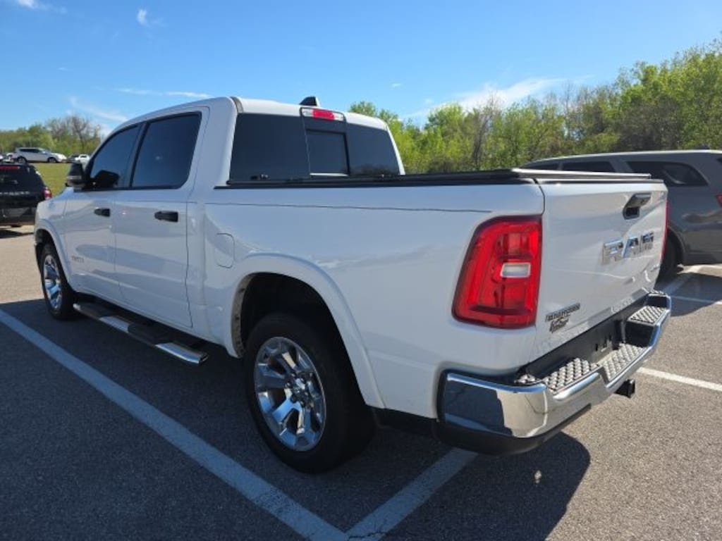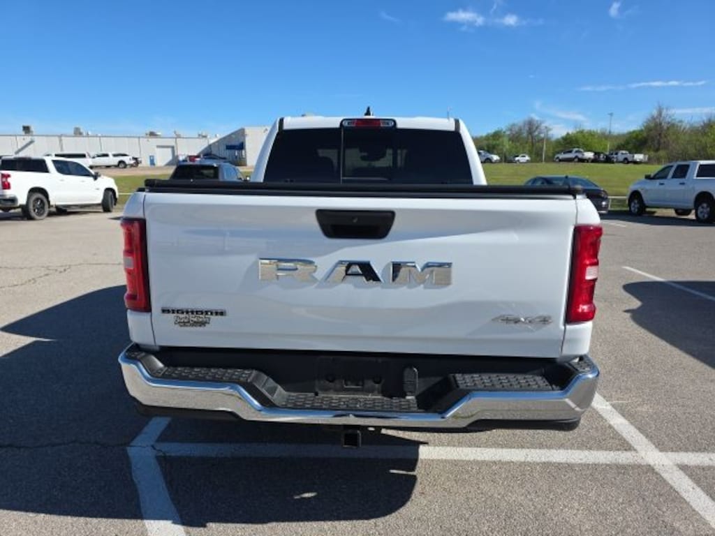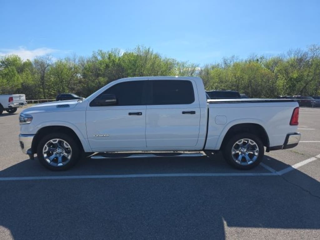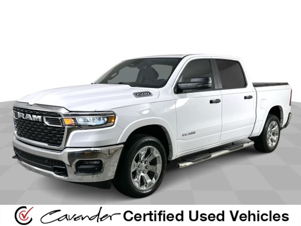 Cavender Certified Pre-Owned Program Built-in Benefits: Limited Powertrain Warranty for your peace of mind. Coverage includes components for engine, transmission and axles (for specific component coverage, please speak with a dealer representative). 24/7 Roadside Assistance â" No out-of-pocket costs for customers towed to our dealership (if located within 30 miles), lockout assistance, jump start, fuel and fluid delivery, flat tire changes, available 365 days/year, up to $100 maximum coverage per roadside incident. A Vehicle History Report is included with every Cavender Certified Pre-Owned vehicle to offer you Confidence knowing that the vehicle you are purchasing is right for you and the road ahead. (Limitation and exclusions apply. Please refer to your Limited Warranty Registration for full coverage information.) The Cavender Auto Family, proudly serving our communities since 1939, and we look forward to serving you! - Equipment: Big Horn Level 2 Equipment Group (115V Auxiliary Power Outlet, 115V Auxiliary Rear Power Outlet, 12" Touchscreen Display, 2nd Row In Floor Storage Bins, 400W Inverter, 4G LTE Wi-Fi Hot Spot, 9 Amplified Speakers w/Subwoofer, Air Conditioning ATC w/Dual Zone Control, Apple CarPlay, Auto Power-Folding Mirrors, Auto-Dimming Exterior Driver Mirror, Auto-Dimming Rear-View Mirror, Black Exterior Mirrors, Black Premium Power Mirrors, Cluster 7.0" TFT Color Display, Configurable Drive Mode, Connected Travel & Traffic Services, Connectivity - US/Canada, Convex Wide-Angle Exterior Mirror Insert, Exterior Mirrors Courtesy Lamps, Exterior Mirrors w/Heating Element, Exterior Mirrors w/Supplemental Signals, Glove Box Lamp, Google Android Auto, GPS Antenna Input, GPS Navigation, HD Radio, Heated Front Seats, Heated Steering Wheel, Integrated Voice Command w/Bluetooth, Leather Wrapped Steering Wheel, LED Dome Lamp w/On/Off Switch, LED Footwell Lighting, Media Hub w/2 Charge Only USBs, Overhead LED Lamps, Power 2-Way Driver Lumbar Adjust, Power Adjust 8-Way Driver Seat, Power Adjustable Pedals, Premium Overhead Console, Radio: Uconnect 5 Nav w/12.0" Display, Rear Power Sliding Window, Rear Window Defroster, Remote Tailgate Release, Security Alarm, SiriusXM w/360L, Steering Wheel Mounted Audio Controls, Sun Visors w/Illuminated Vanity Mirrors, Universal Garage Door Opener, and USB Host Flip), Protection Group (Tow Hooks), Quick Order Package 23Z Big Horn (Big Horn Badge), 1500 Big Horn/Lone Star, 4D Crew Cab, 4WD, Bright White Clearcoat, 3 Rear Seat Head Restraints, 3.21 Rear Axle Ratio, 4 Way Front Headrests, 4-Wheel Disc Brakes, 6 Speakers, ABS brakes, Air Conditioning, Alloy wheels, AM/FM radio, Anti-Spin Differential Rear Axle, Apple CarPlay/Android Auto, Auto High-beam Headlights, Brake assist, Bumpers: chrome, Cloth Bench Seat, Compass, Delay-off headlights, Driver door bin, Dual front impact airbags, Dual front side impact airbags, Electronic Stability Control, Front anti-roll bar, Front Center Armrest w/Storage, Front fog lights, Front reading lights, Front Seat Back Map Pockets, Front wheel independent suspension, Fully automatic headlights, Heated door mirrors, Illuminated entry, Low tire pressure warning, Manual Adjust 4-Way Front Passenger Seat, Manual Folding Exterior Mirrors, Occupant sensing airbag, Outside temperature display, Overhead airbag, Overhead console, Panic alarm, ParkView Rear Back-Up Camera, Passenger door bin, Passenger vanity mirror, Power door mirrors, Power steering, Power
