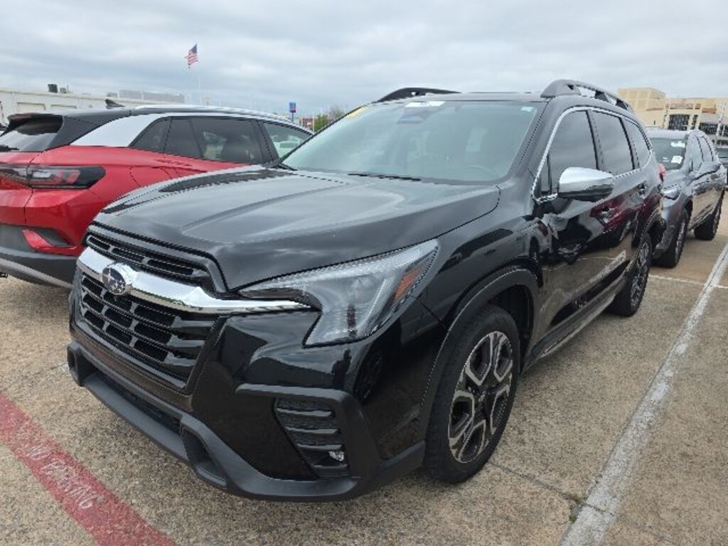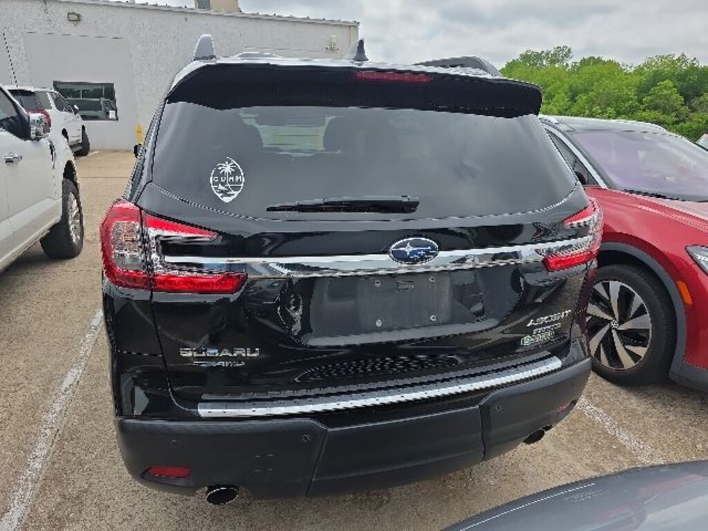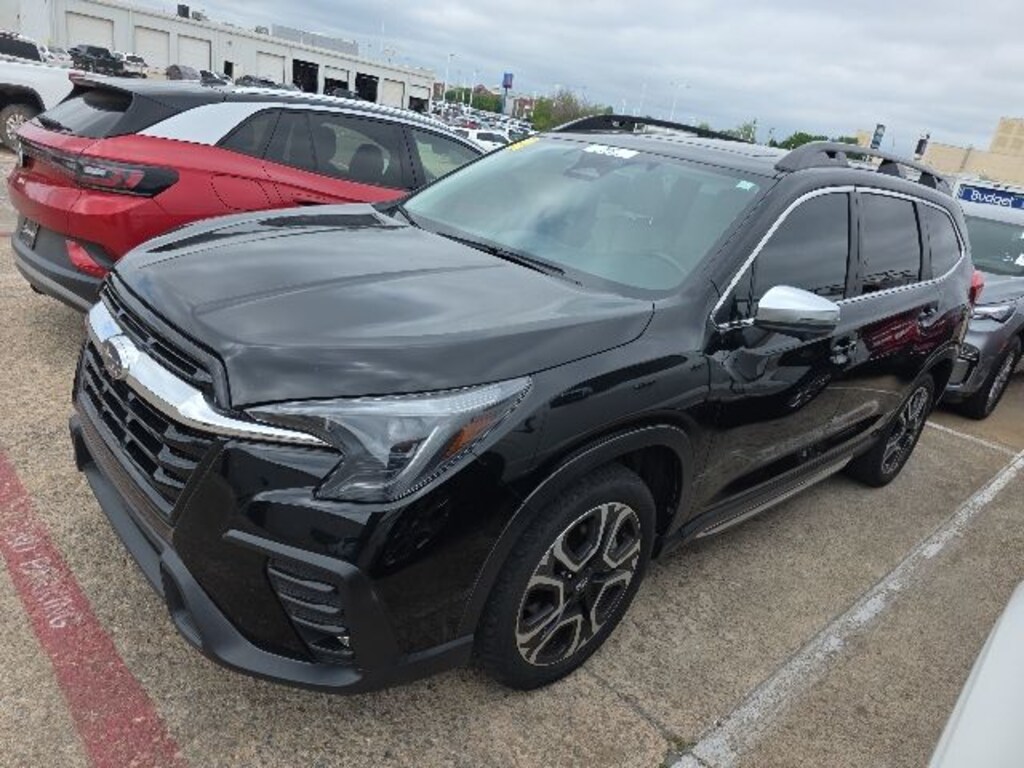 Features: , Technology Package (Cabin Connect, Panoramic Power Moonroof w/UV/Drk Tint Dual Glass, Radio: Subaru STARLINK 11.6" Multimedia Nav System, Retractable Cargo Area Cover, Satin Chrome Power-Folding Exterior Power Mirrors, and Surround View Monitor System), Ascent Limited, 4D Sport Utility, AWD, Crystal Black Silica, Warm Ivory w/Perforated Leather-Trimmed Upholstery, 3rd row seats: bench, 4-Wheel Disc Brakes, 6 Speakers, ABS brakes, Air Conditioning, All-Weather Floor Liners, Alloy wheels, AM/FM radio: SiriusXM, Auto High-beam Headlights, Auto-dimming Rear-View mirror, Automatic temperature control, Axle Ratio: 4.44, Brake assist, Bumpers: body-color, Delay-off headlights, Driver door bin, Driver vanity mirror, Dual front impact airbags, Dual front side impact airbags, Electronic Stability Control, Emergency communication system: STARLINK Safety and Security (Subscription Required), Exterior Parking Camera Rear, Four wheel independent suspension, Front anti-roll bar, Front Bucket Seats, Front Center Armrest, Front dual zone A/C, Front fog lights, Front reading lights, Fully automatic headlights, Garage door transmitter: HomeLink, Heated door mirrors, Heated Front Bucket Seats, Heated front seats, Heated rear seats, Heated steering wheel, HVAC memory, Illuminated entry, Knee airbag, Leather Shift Knob, Leather steering wheel, Low tire pressure warning, Memory seat, Occupant sensing airbag, Outside temperature display, Overhead airbag, Overhead console, Panic alarm, Passenger door bin, Passenger vanity mirror, Perforated Leather-Trimmed Upholstery, Power door mirrors, Power driver seat, Power Liftgate, Power passenger seat, Power steering, Power windows, Radio data system, Radio: Subaru STARLINK 11.6" Multimedia Plus System, Rear air conditioning, Rear anti-roll bar, Rear Bumper Cover, Rear reading lights, Rear seat center armrest, Rear window defroster, Rear window wiper, Reclining 3rd row seat, Remote keyless entry, Security system, Speed control, Speed-sensing steering, Split folding rear seat, Spoiler, STARLINK/Apple CarPlay/Android Auto, Steering wheel mounted audio controls, Tachometer, Telescoping steering wheel, Tilt steering wheel, Traction control, Trip computer, Turn signal indicator mirrors, Variably intermittent wipers, Wheels: 20" x 7.5 J Dk Gray Alloy w/Machine Finish, and Wireless Charger.