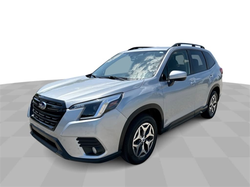 Cavender Certified Pre-Owned Program Built-in Benefits: Limited Powertrain Warranty for your peace of mind. Coverage includes components for engine, transmission and axles (for specific component coverage, please speak with a dealer representative). 24/7 Roadside Assistance â" No out-of-pocket costs for customers towed to our dealership (if located within 30 miles), lockout assistance, jump start, fuel and fluid delivery, flat tire changes, available 365 days/year, up to $100 maximum coverage per roadside incident. A Vehicle History Report is included with every Cavender Certified Pre-Owned vehicle to offer you Confidence knowing that the vehicle you are purchasing is right for you and the road ahead. (Limitation and exclusions apply. Please refer to your Limited Warranty Registration for full coverage information.) The Cavender Auto Family, proudly serving our communities since 1939, and we look forward to serving you! - Equipment: Blind Spot Detection w/RCTA & Power Rear Gate (Blind-Spot Detection (BSD), Driver's Seatback Divided Pocket, Dual USB Charge Ports, EyeSight System, Multi-Function High Grade Display, and Power Rear Gate), Forester Premium, 4D Sport Utility, AWD, Ice Silver Metallic, Black w/Premium Cloth Upholstery, 3.70 Axle Ratio, 4-Wheel Disc Brakes, 6 Speakers, ABS brakes, Air Conditioning, Alloy wheels, AM/FM radio: SiriusXM, Anti-whiplash front head restraints, Auto High-beam Headlights, Automatic temperature control, Brake assist, Bumpers: body-color, CD player, Driver door bin, Driver vanity mirror, Dual front impact airbags, Dual front side impact airbags, Electronic Stability Control, Emergency communication system: STARLINK Safety and Security (Subscription Required), Exterior Parking Camera Rear, Four wheel independent suspension, Front anti-roll bar, Front Bucket Seats, Front Center Armrest, Front fog lights, Front reading lights, Fully automatic headlights, Heated door mirrors, Heated Front Bucket Seats, Heated front seats, Illuminated entry, Knee airbag, Low tire pressure warning, Occupant sensing airbag, Outside temperature display, Overhead airbag, Overhead console, Panic alarm, Passenger door bin, Passenger vanity mirror, Power door mirrors, Power driver seat, Power moonroof: Panoramic, Power steering, Power windows, Premium Cloth Upholstery, Radio data system, Radio: Subaru Starlink 6.5" Multimedia Plus System, Rear anti-roll bar, Rear seat center armrest, Rear window defroster, Rear window wiper, Remote keyless entry, Roof rack: rails only, Security system, Speed control, Speed-sensing steering, Split folding rear seat, Spoiler, STARLINK/Apple CarPlay/Android Auto, Steering wheel mounted audio controls, Tachometer, Telescoping steering wheel, Tilt steering wheel, Traction control, Trip computer, Variably intermittent wipers, and Wheels: 17" x 7.0 J Black Machine Finish Alloy.